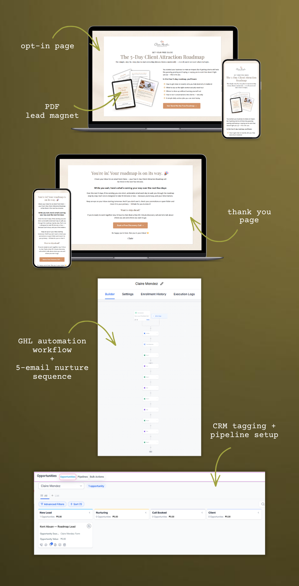 Build a complete lead generation system that captures leads, delivers a free guide, and nurtures them toward a discovery call, all automated inside GHL